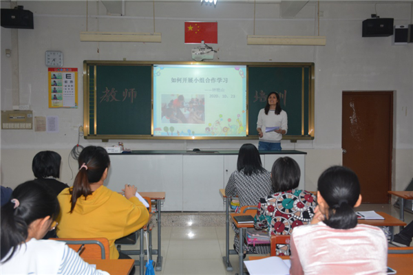 緊接著,英語科組吳麗兒老師結合科組全體教師的智慧,分享了“學導練”師友互助教學模式在英語教學中的運用。如師友小組合作賽讀提高學生英語口語練習的積極性;師友互助記憶單詞、句子,小組長責任制既有利于鍛煉學生的自主管理能力,同時讓學生成為學習的主人。
