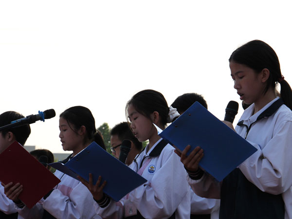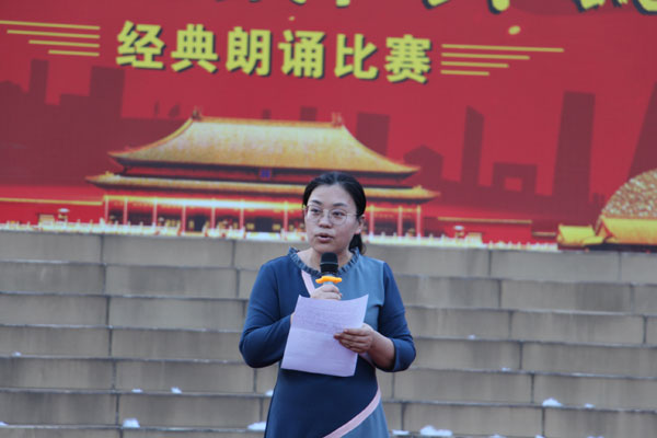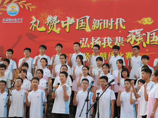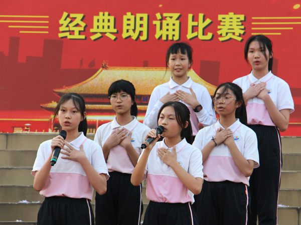 2020年,是全面建成小康社會的決勝之年,是奪取新時(shí)代中國特色社會主義偉大勝利的關(guān)鍵之年,是中國現(xiàn)代化強(qiáng)國征途的啟航之年。為實(shí)現(xiàn)“立德樹人”教育目標(biāo),培養(yǎng)德智體美全面發(fā)展的新時(shí)代中國社會主義建設(shè)者和接班人,弘揚(yáng)學(xué)生的“愛國心,報(bào)國情,強(qiáng)國志”,豐富校園文化生活,打造書香校園。陳村鎮(zhèn)初級中學(xué)初二級于2020年11月5日下午,在學(xué)校操場舉辦了“禮贊中國新時(shí)代,弘揚(yáng)我輩強(qiáng)國志”的朗誦比賽。陳村鎮(zhèn)初級中學(xué)謝文忠校長、專職書記梁兆倫副書記、李日和副校長、汪立云副校長、教務(wù)處楊麗桃主任、總務(wù)處林鵬副主任出席了本次比賽活動(dòng)。初二級全體語文老師擔(dān)任評委。