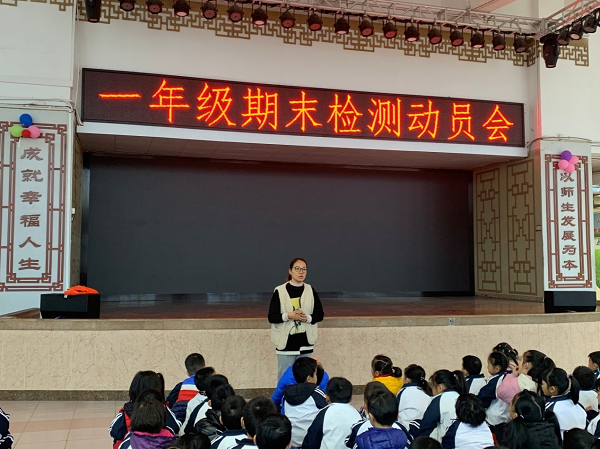 為了幫助學(xué)生調(diào)整心態(tài),樹立必勝信念,激勵學(xué)生以嚴肅、認真的態(tài)度復(fù)習(xí)備考,指導(dǎo)學(xué)生科學(xué)安排學(xué)習(xí)時間,以高昂的斗志、飽滿的精神備戰(zhàn)期末檢測。本周,北海小學(xué)分年級召開了期末檢測動員會,會上老師代表向同學(xué)們傳授了能提高復(fù)習(xí)效率的小技巧,幫助同學(xué)們調(diào)整心態(tài),以最好的狀態(tài)迎接期末檢測。