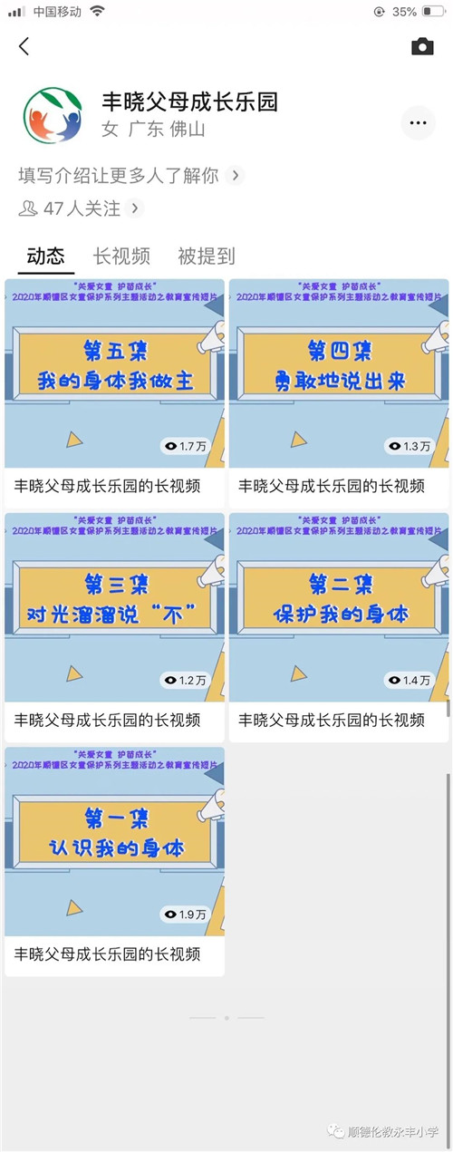 為了拓寬豐曉父母成長樂園的網絡學習平臺,豐富家長們的學習課程,2020年底,永豐小學成立了動漫制作小組,在豐曉父母成長樂園的網絡學習平臺“微豐堂”上創(chuàng)立“微動漫”項目,嘗試采用動漫的形式向家長們進行家庭教育知識的宣傳。在順德區(qū)婦聯(lián)、順德區(qū)家庭教育聯(lián)合會的指導下,動漫小組制作了五期女童防性侵的家庭教育系列小動漫,視頻發(fā)布后,受到了家長們的好評,點擊率最高達到了1.9萬!