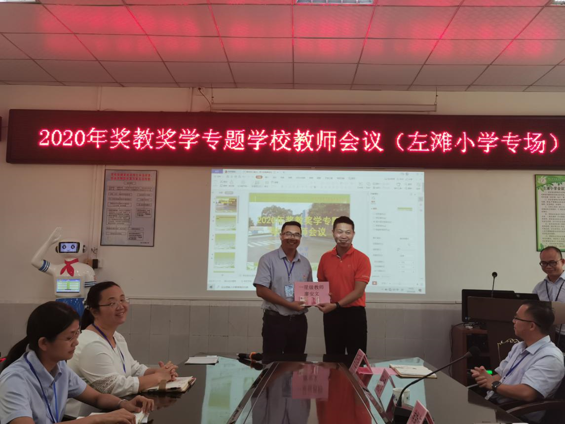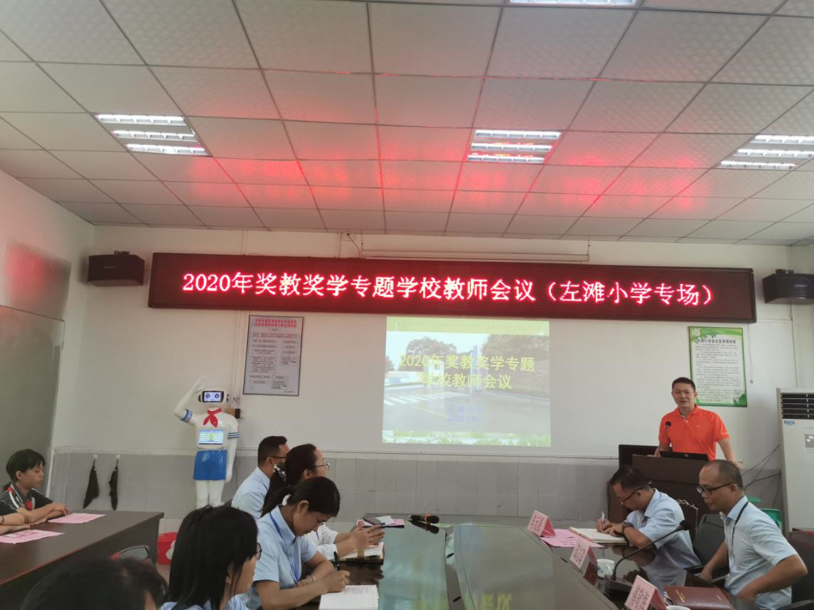 為學(xué)習(xí)貫徹龍江鎮(zhèn)2020年度獎教獎學(xué)大會精神,乘著尊師重教的和風(fēng),9月8日下午,龍江左灘小學(xué)召開2020年獎教獎學(xué)專題學(xué)校教師會議,龍江鎮(zhèn)委傅敬海委員、鎮(zhèn)教育局代表以及左灘小學(xué)全體教師出席本次會議。