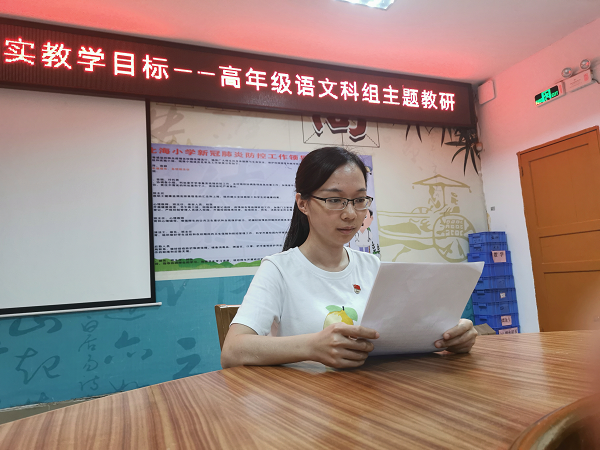 本次研討會(huì),黃娟科長結(jié)合科組兩位青年教師魏佳璇老師和何尚蓉老師參加倫教街道青年教師教學(xué)能力大賽榮獲特等獎(jiǎng)和一等獎(jiǎng)的好成績,拋磚引玉,總結(jié)本次賽事,引導(dǎo)大家思考說課和教學(xué)之道,她指出新教材落腳點(diǎn)為人文主題和語文要素,說課要從教材、教法學(xué)法、教學(xué)過程、教學(xué)效果四方面呈現(xiàn)。