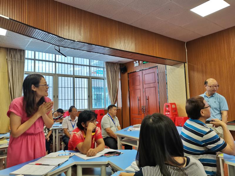 為提升科組建設(shè),促進(jìn)學(xué)??蒲泄ぷ靼l(fā)展,9月24日,勒流新球中學(xué)教研室特意邀請(qǐng)了正高級(jí)教師、順德區(qū)教育發(fā)展中心教科室鄧國強(qiáng)老師來校召開講座。講座分兩個(gè)部分進(jìn)行,一是面向所有學(xué)科的科長,開展了以“如何當(dāng)好學(xué)科組長”為主題的講座,二是給所有的數(shù)學(xué)老師講了“如何研究教育教學(xué)真問題”。參與活動(dòng)的人員有街道教研室汪志偉老師、新球中學(xué)何興球校長、郭懷才副校長、古林海主任以及相關(guān)老師。