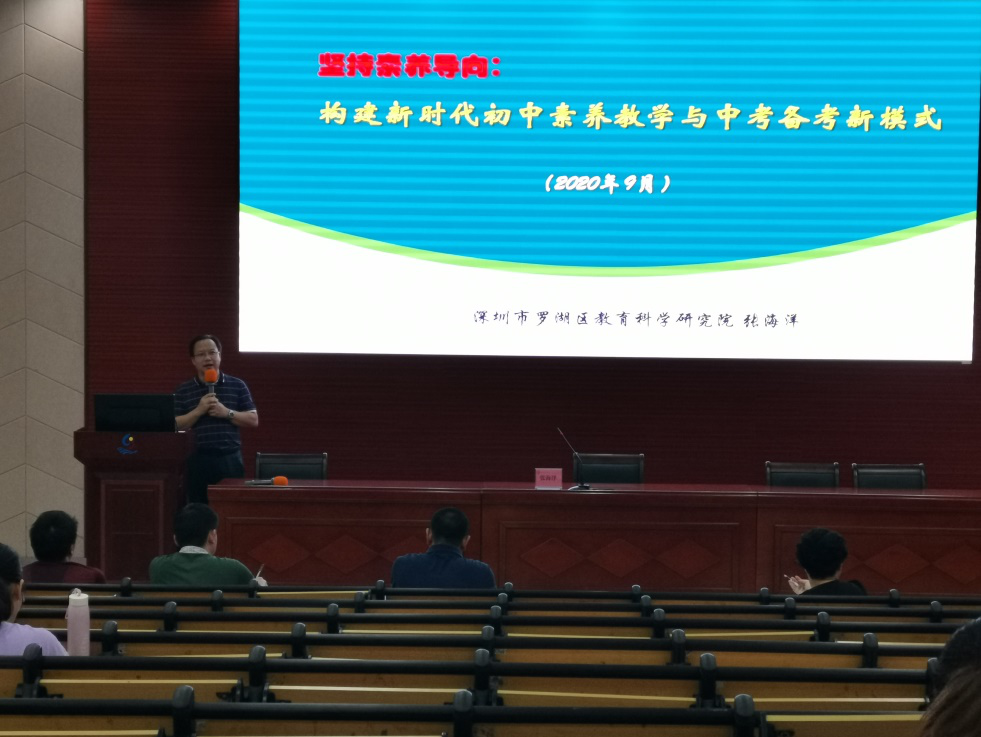 2020年9月29日,我校特邀深圳市羅湖區(qū)教育科學(xué)研究院張海洋主任開展題為《堅持素養(yǎng)導(dǎo)向:構(gòu)建新時代初中素養(yǎng)教學(xué)與中考備考新模式》的講座,我校全體教師參加了這次培訓(xùn)。