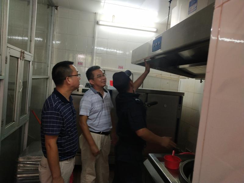 學校安全檢查小組對廚房現(xiàn)場進行檢查