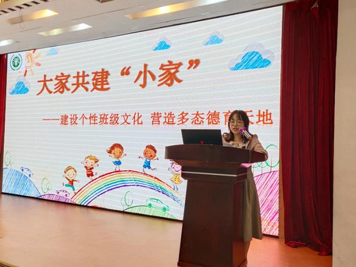 三年級康俏媚老師以《大家共建“小家”》為題,分別從班級環(huán)境文化建設、班級制度文化建設、班級精神文化建設、班級文化建設的意義四個方面進行了詳細地介紹。演講過程圖文并茂,內(nèi)容詳實,既有營造濃厚班級文化,又蘊含了引導學生自主管理的教育智慧,讓在座老師覺得受益不少。