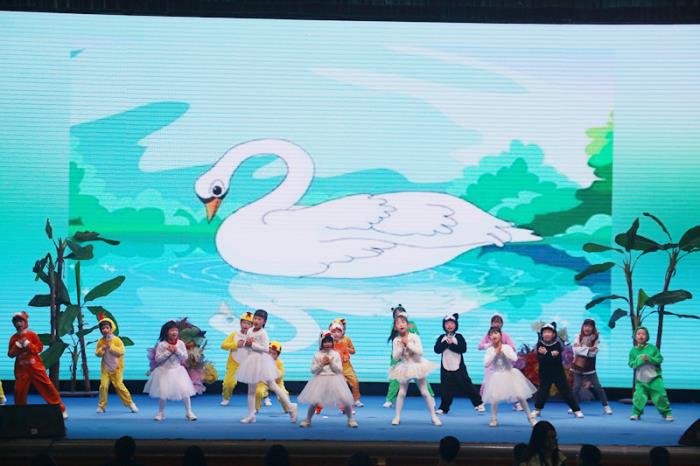 小學(xué)部英語特色班的同學(xué)們帶來英語童話劇表演《丑小鴨》。小演員們自信大方,造型可愛,把故事演繹的幽默風(fēng)趣。惟妙惟肖的表演讓臺下笑聲、掌聲此起彼伏。