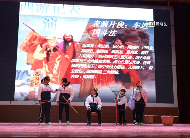 為了打造書香校園,掀起讀書熱潮,讓學(xué)子們走進名著,傳承經(jīng)典,12月23日上午,七年級全體師生齊聚體育館參加名著閱讀總結(jié)活動。這次活動以《西游記》的小劇場形式展開,七年級的全體師生都認(rèn)真觀看,興致頗濃。