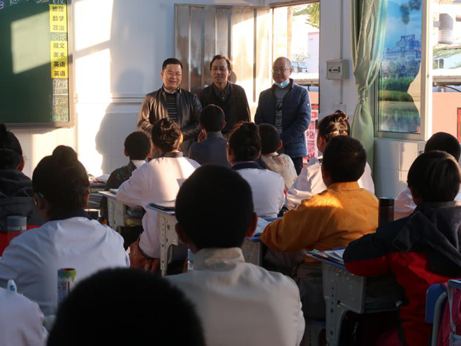 王光書記把西藏部都走了一遍,詳細詢問西藏班孩子們的學習和生活,聽著孩子們歡快的回答,看孩子們燦爛的笑臉,他感到高興和欣慰。王光書記祝福孩子們在江義中學快樂學習,健康成長,在老師的教導(dǎo)下能夠成為對祖國有用的人才。