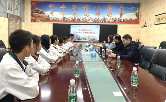 為了聽取學(xué)生的意見建議,滿足青年學(xué)生成長成才的需求,提升學(xué)校管理育人、服務(wù)育人的針對性與實(shí)效性,2020年12月25日,我校九年級舉行“我與校長面對面”學(xué)生代表座談會(huì)。我校胡和秋校長、劉啟文副校長與初三的10名學(xué)生代表一起面對面傾心交流。座談會(huì)由九年級級長楊肖君主持。