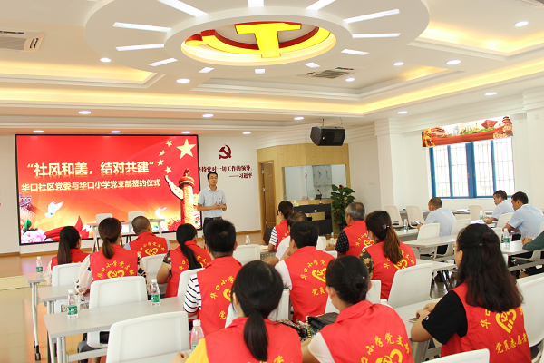 下午,在華口社區(qū)黨群服務(wù)中心,舉行華口社區(qū)黨委與華口小學(xué)黨支部的黨建結(jié)對(duì)儀式。華口社區(qū)書(shū)記黃活柏表示,希望通過(guò)通過(guò)結(jié)對(duì)共建,使雙方黨組織互相交流,互相學(xué)習(xí),并且能夠形成合力共同做好社區(qū)服務(wù)的工作。