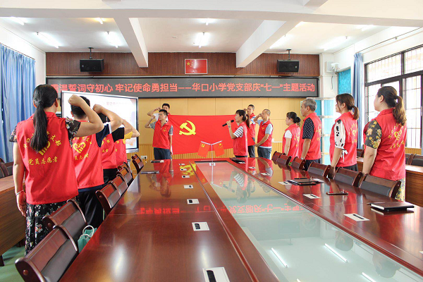 校黨的建設(shè),繼承和發(fā)揚(yáng)黨的優(yōu)良傳統(tǒng),激勵(lì)黨員干部實(shí)干擔(dān)當(dāng)、激情創(chuàng)業(yè),中共華口小學(xué)黨支部開(kāi)展了慶祝建黨99周年的系列活動(dòng)。