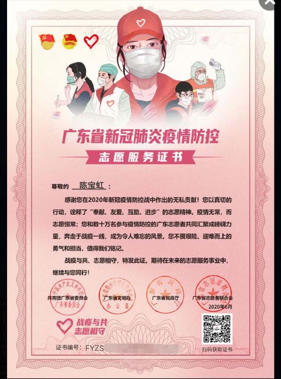 致敬:容桂小學(xué)志愿者,您的廣東省新冠肺炎疫情防控志愿服務(wù)證書(shū)來(lái)啦