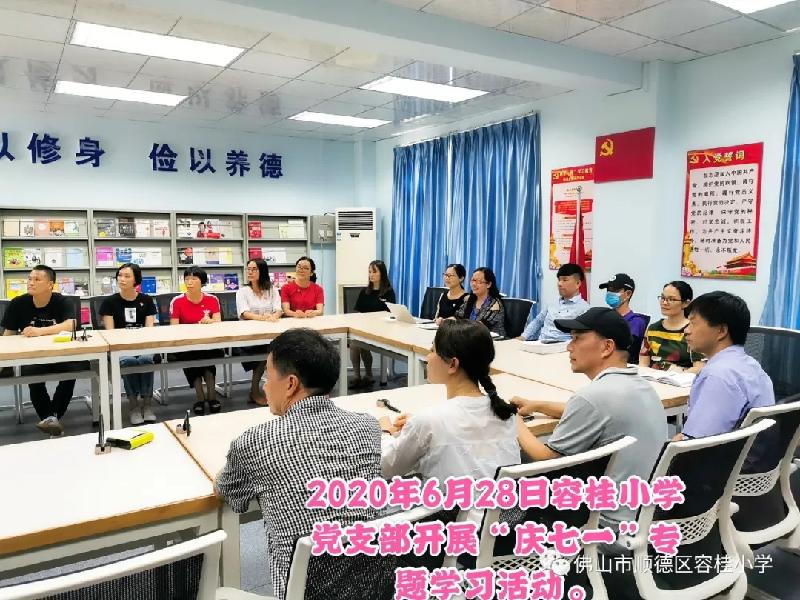 為慶祝中國共產(chǎn)黨建黨99周年,繼承和發(fā)揚黨的優(yōu)良傳統(tǒng),充分發(fā)揮黨組織的戰(zhàn)斗堡壘作用和黨員的先鋒模范作用,2020年6月28日下午3時,容桂小學黨支部組織全體黨員教師觀看了由中共佛山市委組織部、中共佛山市直屬機關工作委員會主辦的“戰(zhàn)‘疫’走在前,創(chuàng)模作表率”--2020年佛山市慶“七一”活動。