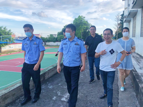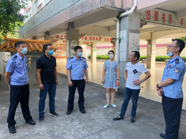 為切實(shí)做好常態(tài)化疫情防控下校園安全工作,防止安全事故的發(fā)生,進(jìn)一步夯實(shí)校園安全工作基礎(chǔ),凈化校園及周邊的治安秩序,維護(hù)校園安全。7月7日下午,容桂總商會(huì)副會(huì)長(zhǎng)(秘書長(zhǎng))、小黃圃小學(xué)管委會(huì)主任黃淼,容桂街道黨工委委員、容桂派出所所長(zhǎng)汪剛,容桂派出所辦公室主任吳沛明,容桂派出所城東中隊(duì)長(zhǎng)伍和雄一行到小黃圃小學(xué)視察校園安全工作。學(xué)校許社初校長(zhǎng)、黃繼紅副校長(zhǎng)等行政陪同。