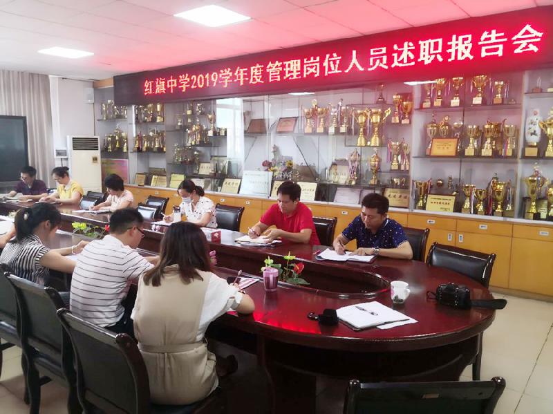 中層崗位管理人員是學(xué)校凝聚教職工力量的核心,是學(xué)校決策得以推進(jìn)和落實(shí)的重要環(huán)節(jié)和有力保證。為全面、客觀、公正地反映學(xué)校中層人員的政治業(yè)務(wù)素質(zhì)和履行崗位職責(zé)情況,同時(shí)督促學(xué)校中層崗位人員成為有思想、有擔(dān)當(dāng)、會(huì)干事、能干事的人。6月30日和7月10日兩天上午,紅旗中學(xué)舉行了中層崗位人員述職大會(huì)。全體行政、各部門(mén)負(fù)責(zé)人出席會(huì)議。