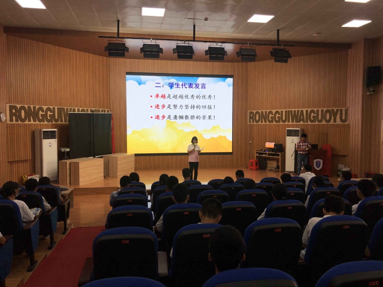 會(huì)議開(kāi)始由學(xué)生代表發(fā)言,分享他們的學(xué)習(xí)經(jīng)驗(yàn),并送上他們的中考祝福,寄語(yǔ)容外學(xué)子必定旗開(kāi)得勝,馬到功成!