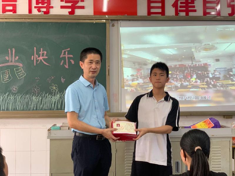 在即將離開母校的時刻,全體畢業(yè)生再一次聆聽可親可敬的曾校長殷殷囑托:“記得六年前校園繽紛落葉,難忘畢業(yè)季七月似火驕陽。為了你們心中的遠方,南環(huán)用最溫暖的目光相送……你們的童年與南環(huán)有最美的相遇!同學們,你們每個人都收到了學校發(fā)放的《畢業(yè)季留言紀念冊》,打開它,同學們就看到了八個大字:‘追逐夢想,不負韶華’,‘韶華’是最美好的時光,請你們努力奮進,不負你們最美好的時光!” 隨后,曾校長鄭重地為學生代表們頒發(fā)畢業(yè)證書。六年來,陪著孩子們一同成長,一路收獲的老師們也來見證孩子們的幸福時光。這是一群不忘初心,獻身教育的老師們!