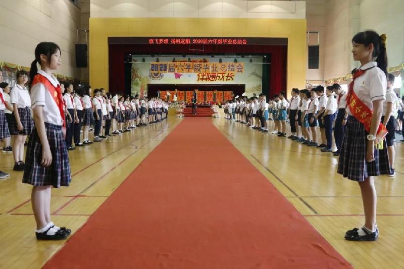 2020屆“放飛夢想,揚帆啟航”六年級畢業(yè)總結(jié)會在師生們的掌聲中正式啟動。升國旗,唱國歌,難忘老師的培養(yǎng),感恩學(xué)校的付出。