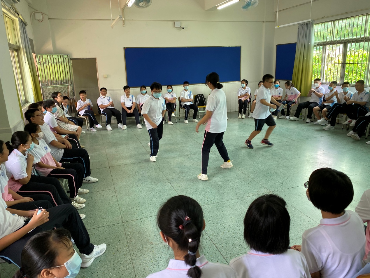 各班同學(xué)圍成一個(gè)大圓,以“大風(fēng)吹”活動(dòng)來暖身,迅速拉近同學(xué)們間的距離,讓大家在活躍的氣氛中放松心情。