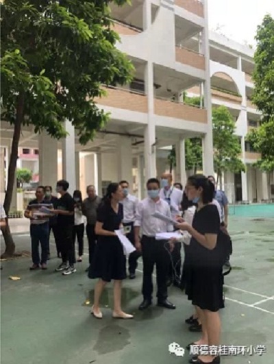 2020年8月13日下午,容桂育美教育集團南環(huán)小學迎接容桂街道創(chuàng)建全國文明城市辦公室成員督導檢查。辦公室成員組由容桂街道領導街道辦事處歐勝軍主任、容桂街道黨委劉英華副書記、容桂街道創(chuàng)建辦相關人員以及來自街道經(jīng)科局、街道衛(wèi)計局、街道教育局、容桂環(huán)衛(wèi)城管分局、容桂市監(jiān)分局分管創(chuàng)文工作的副職干部組成。容桂南環(huán)小學行政領導陪同督導組進行了校園視察。
