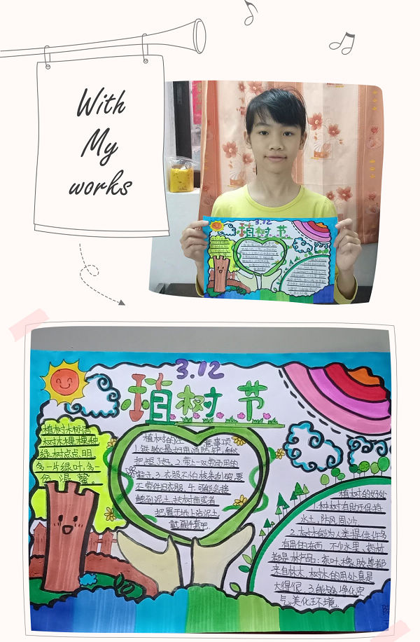 春風(fēng)吹綠了枝頭上的嫩芽,吹綠了地上的小草,也吹動(dòng)了同學(xué)們對(duì)春天的喜愛(ài)。同學(xué)們或拿出自己的畫(huà)筆,畫(huà)下這繁花似錦的春天;或舉起手中的鋼筆,寫(xiě)上對(duì)保護(hù)“地球母親”的新倡議。