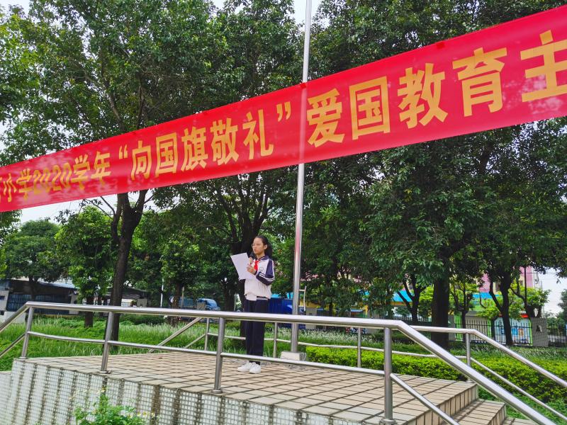 秋高氣爽,春華秋實(shí)。當(dāng)早上八點(diǎn)鐘的太陽(yáng)冉冉升起時(shí),太陽(yáng)的余暉灑落大地,我們迎來(lái)了容桂城西小學(xué)第5周升旗儀式。本次活動(dòng)六2中隊(duì)陸慧婷同學(xué)主持,主題是“向國(guó)旗敬禮”愛(ài)國(guó)教育。當(dāng)義勇軍進(jìn)行曲響起的時(shí)候,同學(xué)們肅立,敬禮,唱國(guó)歌,升國(guó)旗。
