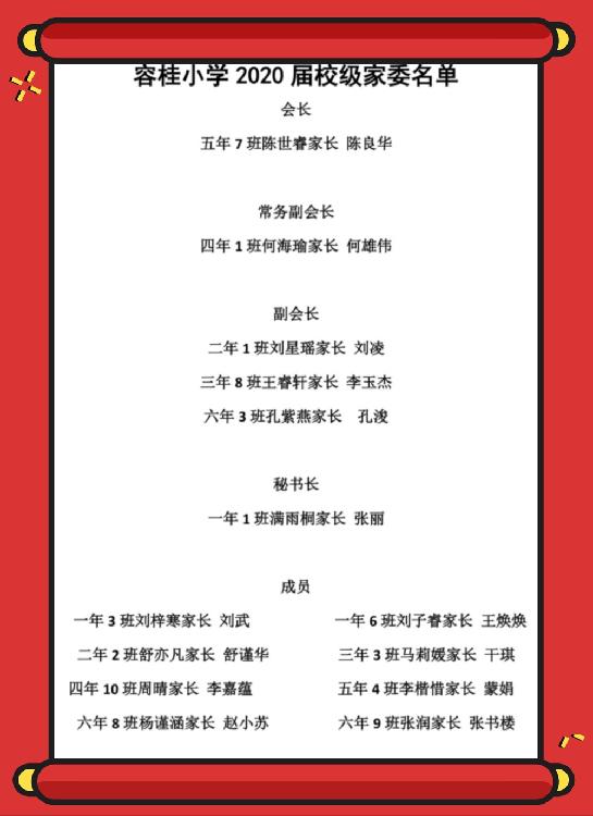 第三項(xiàng)流程:宣布容桂小學(xué)2020屆校級(jí)家委名單