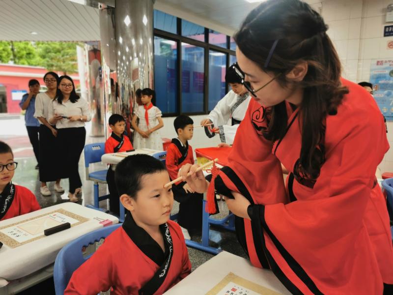 許勇輝校長放下鼓椎,目光深遠(yuǎn)地望著眼前這群童蒙稚子,眼里滿是期許,心里滿是豪情。是的,為了幫助新生上好人生第一課,寫好人生第一筆,學(xué)校特意在孔子誕辰日開展活動。