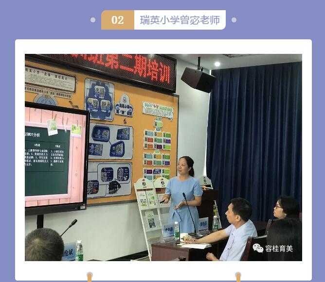 容桂育美教育集團(tuán)瑞英小學(xué)曾宓老師作主題為“啟悟心靈 美麗人生”的瑞英小學(xué)特色課程成果匯報(bào)。她為大家展示瑞英小學(xué)的音樂劇課程成果課視頻及已經(jīng)集結(jié)成冊的音樂劇系列校本教材,并認(rèn)為,“課程是學(xué)校教學(xué)的核心任務(wù)”。