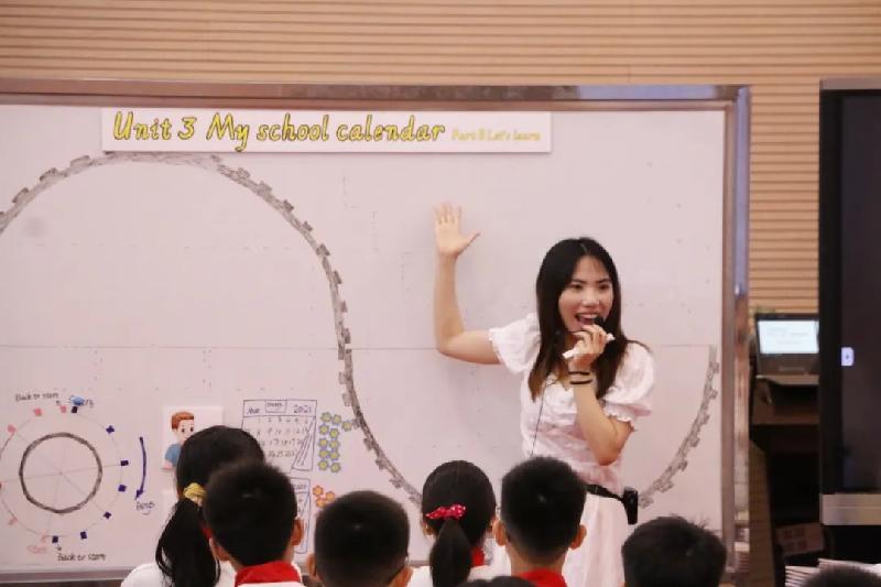 來自容桂高黎小學的林慧玉老師從語篇、語用、語境三個角度出發(fā),通過學生日常生活中熟悉的是事物――“校歷”的形式來展示各個月份的活動與節(jié)日安排。林老師帶領學生走進中西方傳統(tǒng)的節(jié)日,指導學生通過完成任務型活動,進行對話練習,讓學生們在理解的基礎上,嘗試著歸納,總結規(guī)律,與同伴進行交流與表達。