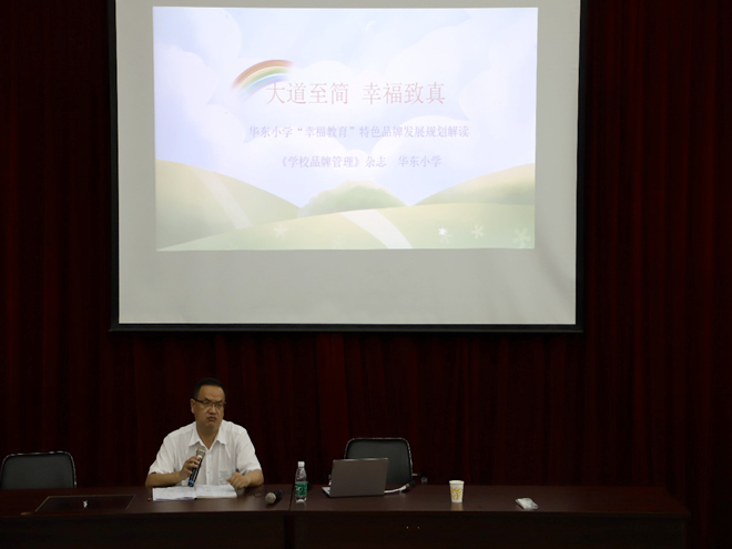 為推動華東小學(xué)的優(yōu)質(zhì)發(fā)展,提升學(xué)校辦學(xué)品質(zhì),促進學(xué)生幸福成長。華東小學(xué)“幸福教育”特色品牌發(fā)展規(guī)劃在2020年7月17日下午舉行了文本解讀會。本次會議分為兩個流程:一是由《學(xué)校品牌管理》雜志的謝老師就華東小學(xué)“幸福教育”品牌發(fā)展規(guī)劃給全校教師進行了詳細解讀,二是再次誠邀廣州市白云區(qū)教育研究院專家王建春老師到校指導(dǎo)生動、能動幸福課堂的實施策略。