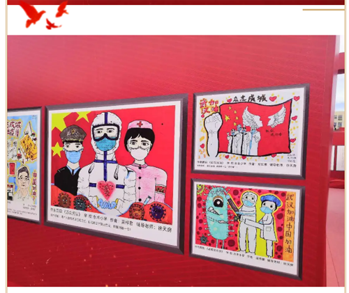 永豐小學(xué)黨支部書記吳凡組織全體黨員來到了展覽區(qū),一起參觀了抗疫工作剪影、抗疫英雄剪影和師生的抗疫主題書畫。偌大的展區(qū),向大家傳達(dá)著戰(zhàn)勝疫情的堅定信念和頑強(qiáng)斗志。
