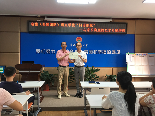 夏日炎炎,酷暑難當(dāng),但葉霖佳小學(xué)的老師們學(xué)習(xí)的熱情絲毫不受影響。2020年7月22日下午3:30順德演講與口才協(xié)會(huì)鐘家勤副會(huì)長(zhǎng)結(jié)合在我校蹲點(diǎn)“問診把脈”發(fā)現(xiàn)的問題,百忙中抽空前來為全校老師作“與家長(zhǎng)溝通的藝術(shù)專題”的培訓(xùn)。