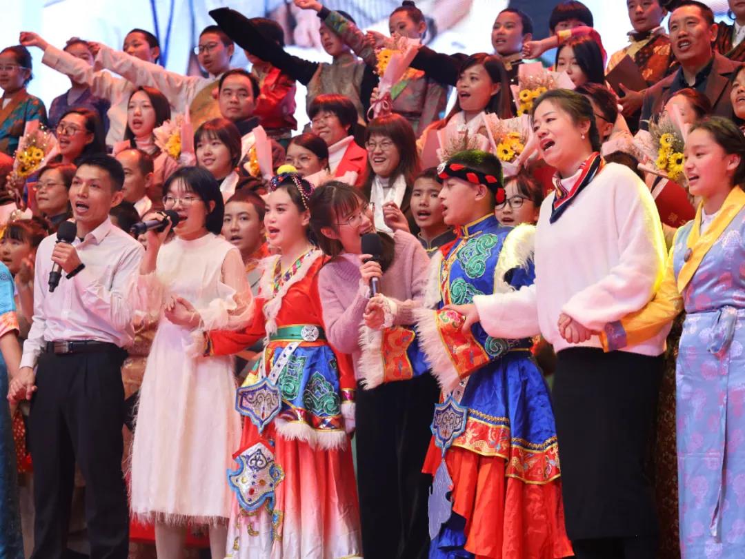 當《漢藏一家親》的樂曲響起時,整臺晚會到達高潮。我們本來就是一家人,我們是中華民族大家庭的一份子,我們各自用自己的努力,迎接中華民族的偉大復興!