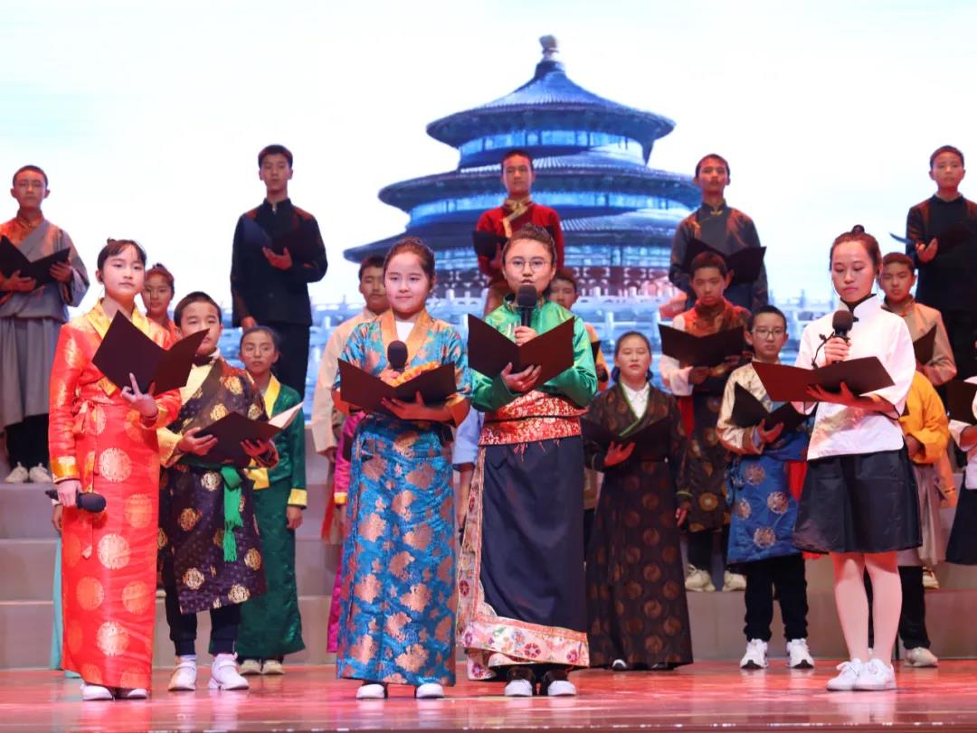 第一篇章是相逢相識常相伴,來自西藏班的旦增玉珍、格桑頓珠琴弦和鳴,創(chuàng)設(shè)的悠遠意境,純潔這全場觀眾的心靈。