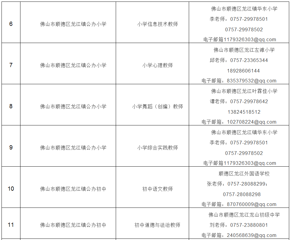 2020年龍江鎮(zhèn)公辦中小學(xué)面向社會(huì)公開招聘合同制教師需求表(小學(xué))