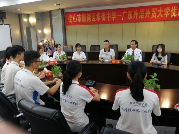 順德華僑中學,系區(qū)屬重點高級中學,坐落在順德新城區(qū)德勝廣場旁,背倚郁郁蔥蔥的順峰山,前臨波光粼粼的德勝河,毗鄰區(qū)政府行政大樓,作伴順德演藝中心、順德圖書館、順德展覽館、順德科學館(在建)等。自然與人文環(huán)境得天獨厚。