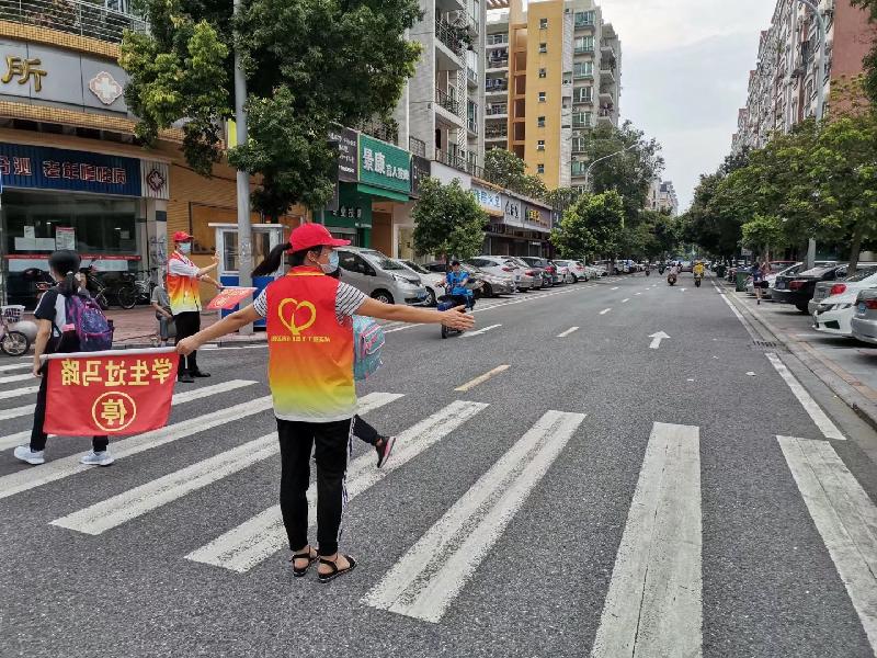 時值2017年9月,楊潤懿老師組織成立了學校的服務隊,他是我的班主任和語文老師,在他的“鼓動”下,媽媽就加入了服務隊?,F(xiàn)在我已經(jīng)讀初中了,當媽媽知道容桂小學成立志愿者服務隊時,又成為了服務隊的一員。