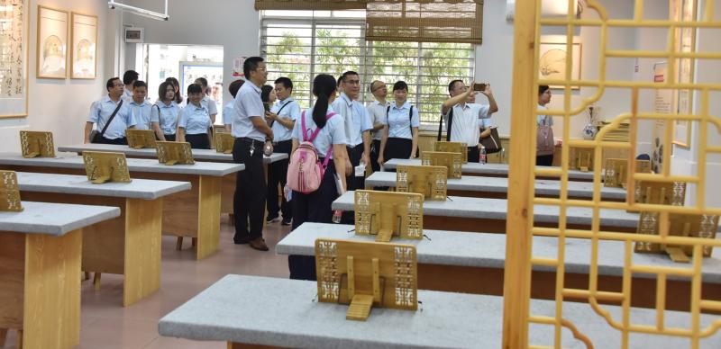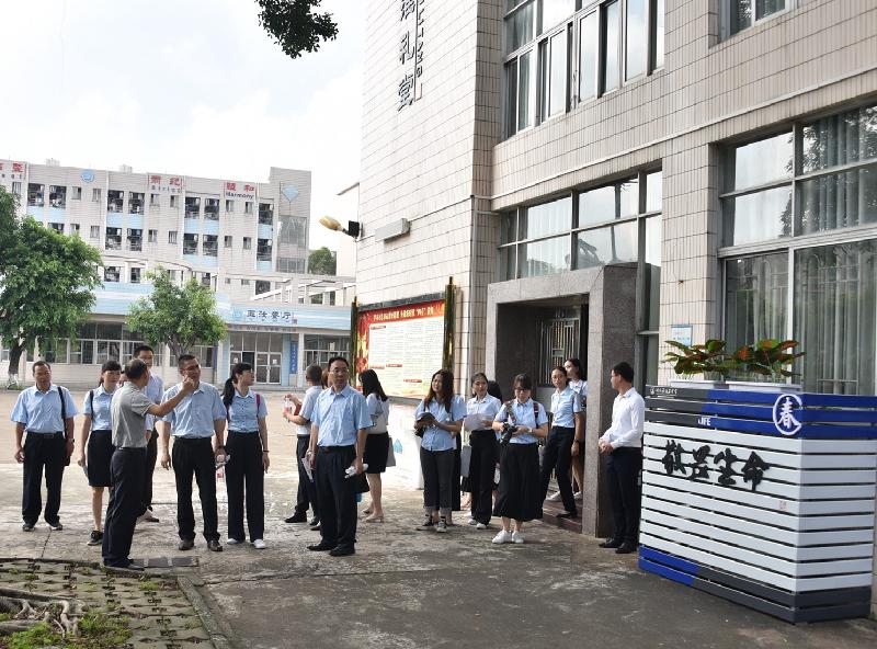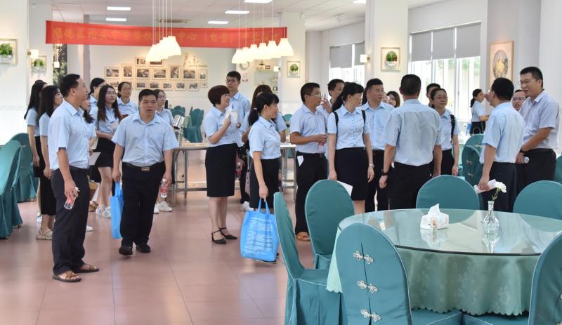 全體行政在大堂迎接來自梅州的同行