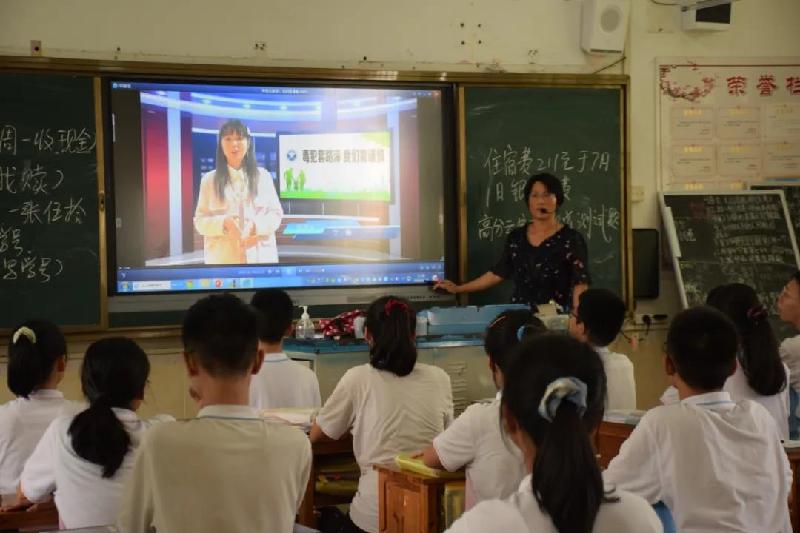 (同學(xué)們觀看禁毒宣傳影片)