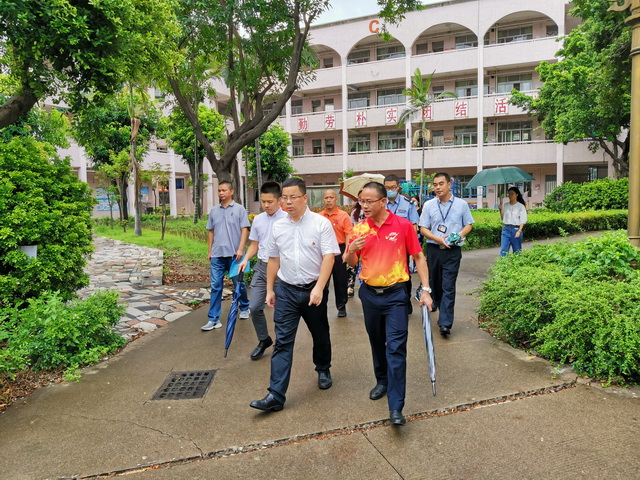 8月13日下午,勒流街道黨工委書記王光、宣傳文體局副局長郭永添同志以及相關單位領導,在教育局常務副局長王家倫同志的陪同下蒞臨我校對創(chuàng)文工作進行視察。