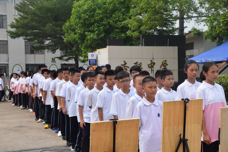 為進一步提高中小學生的交通安全意識和自我防范能力,從源頭上減少和預防交通事故的發(fā)生,在年級的安排下,初一級各班整齊有序地來到學校正門,學習相關交通安全知識。