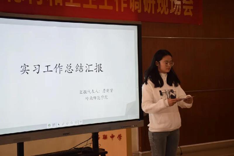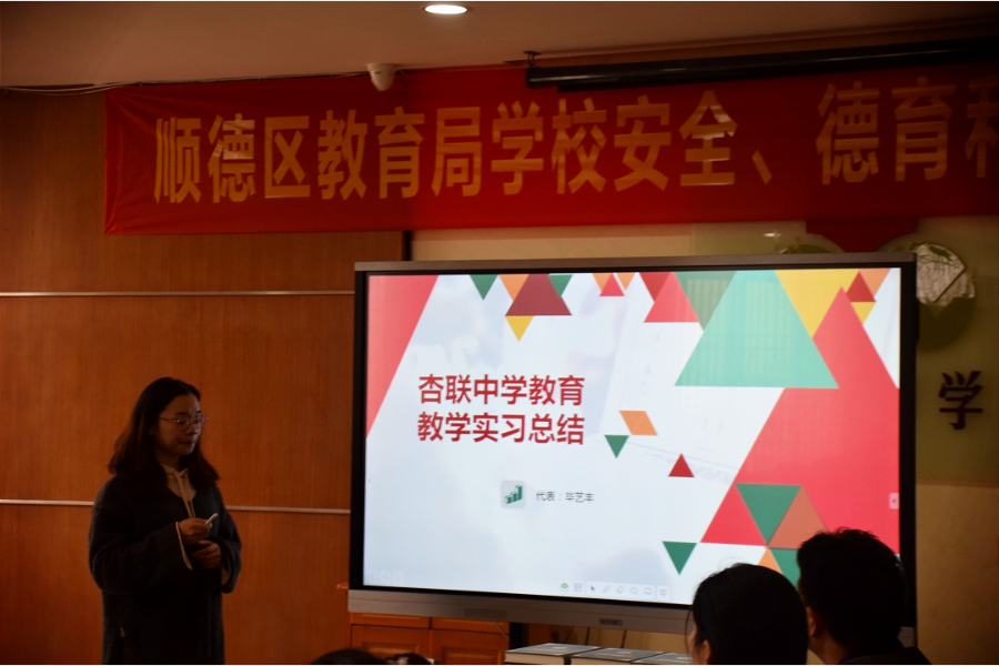 兩名實(shí)習(xí)老師分別進(jìn)行了發(fā)言,首先感謝了杏聯(lián)中學(xué)各位領(lǐng)導(dǎo)和老師對(duì)自己的悉心培養(yǎng)和實(shí)習(xí)工作的大力支持,并從日常生活、教學(xué)教研活動(dòng)、班主任工作等方面對(duì)實(shí)習(xí)工作進(jìn)行了匯報(bào),分享了自己在實(shí)習(xí)崗位上的收獲與感悟。