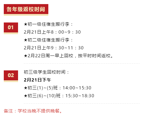 隨后,李副校長從疫情防控期體溫檢測、佩戴口罩、歸校路線、車輛停放、疫情防控期間實(shí)行錯(cuò)峰搬運(yùn)行李等方面強(qiáng)調(diào)了學(xué)生開學(xué)歸校的注意事項(xiàng),并作出了以下返校時(shí)間安排: