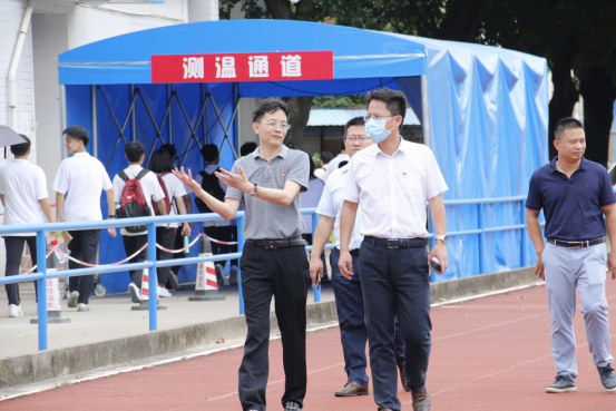 2020年7月2日,順德區(qū)委副書記、政法委書記王勇,區(qū)委辦常務(wù)副主任杜友華,順德區(qū)教育局局長(zhǎng)閔樂萍一行3人蒞臨羅定邦中學(xué),對(duì)2020年高考考點(diǎn)防疫工作開展專項(xiàng)督查,我校校長(zhǎng)熊文華帶領(lǐng)學(xué)校行政陪同檢查。