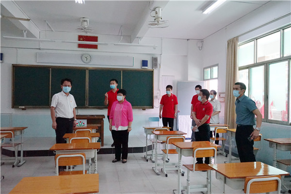 7月2日上午,順德區(qū)區(qū)委副書記、區(qū)政法委書記王勇、區(qū)教育局局長(zhǎng)閔樂(lè)萍一行到容山中學(xué)開展高考防疫專項(xiàng)督查工作。容山中學(xué)校長(zhǎng)、考點(diǎn)主考區(qū)淑玲及相關(guān)行政陪同領(lǐng)導(dǎo)到校園相關(guān)高考功能場(chǎng)室進(jìn)行巡視。
