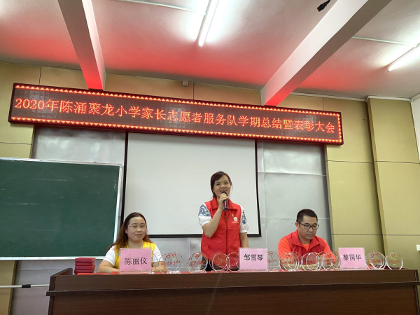 2020年7月10日下午,召開“遇見最美志愿者”---陳涌聚龍小學(xué)志愿服務(wù)隊(duì)學(xué)期總結(jié)暨表彰大會(huì),總結(jié)本學(xué)期的志愿服務(wù)工作,表彰一批優(yōu)秀敬業(yè)的家長(zhǎng)志愿者,并慶祝聚龍小學(xué)志愿服務(wù)隊(duì)成立兩周年,志愿服務(wù)隊(duì)隊(duì)注冊(cè)成功一周年,鄒雪琴校長(zhǎng)、學(xué)校行政及護(hù)學(xué)崗家長(zhǎng)志愿者參加了本次活動(dòng)。