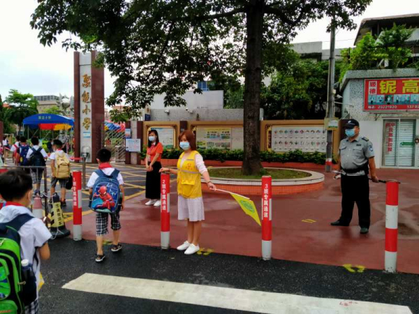 有一種守護(hù)叫風(fēng)雨無(wú)阻,有一種大愛叫默默堅(jiān)守。自家長(zhǎng)志愿者服務(wù)隊(duì)成立以來,家長(zhǎng)志愿者們每日出現(xiàn)在學(xué)校門口,身穿紅色馬甲,手拿黃色旗幟,形成了一道靚麗的風(fēng)景。家長(zhǎng)志愿者們?cè)谛@門口、交通路口等要處疏導(dǎo)交通,維護(hù)交通秩序,為孩子們開辟“綠色通行道”,協(xié)助值日老師、民警同志減輕道路通行壓力,保護(hù)孩子安全上學(xué)。