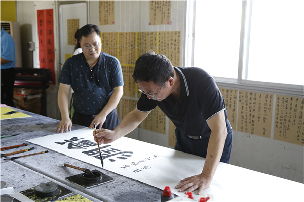 專家們走進(jìn)“和潤書屋”,看到一幅幅學(xué)生洋洋灑灑的書法作品,當(dāng)場感受到濃濃的文化熏陶,他們也忍不住內(nèi)心的激動和熱情,現(xiàn)場揮筆疾書,題下“和潤”和“香遠(yuǎn)益清”兩幅墨寶,并以此作為對“和潤教育”的肯定,贈予學(xué)校留念。